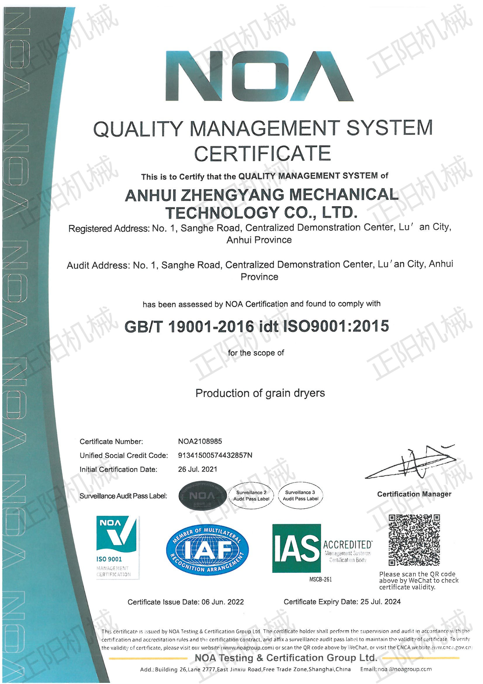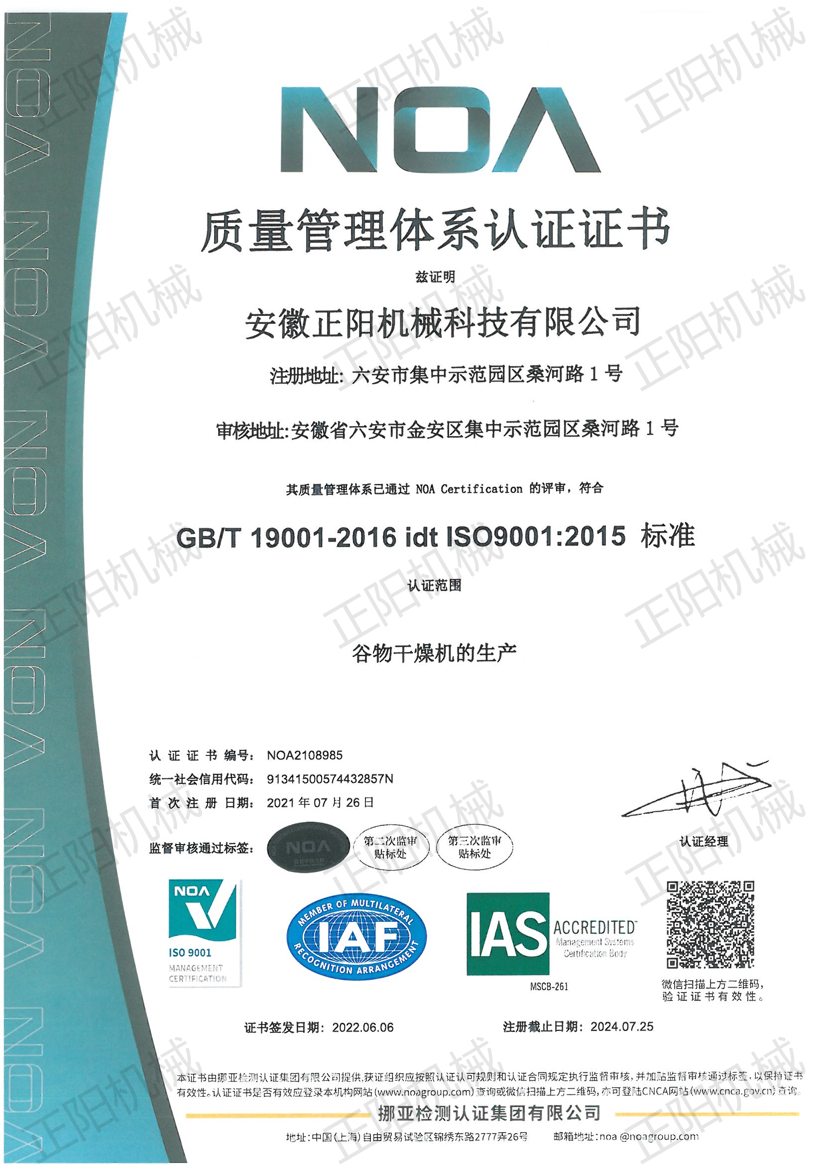 質量管理體系認證證書